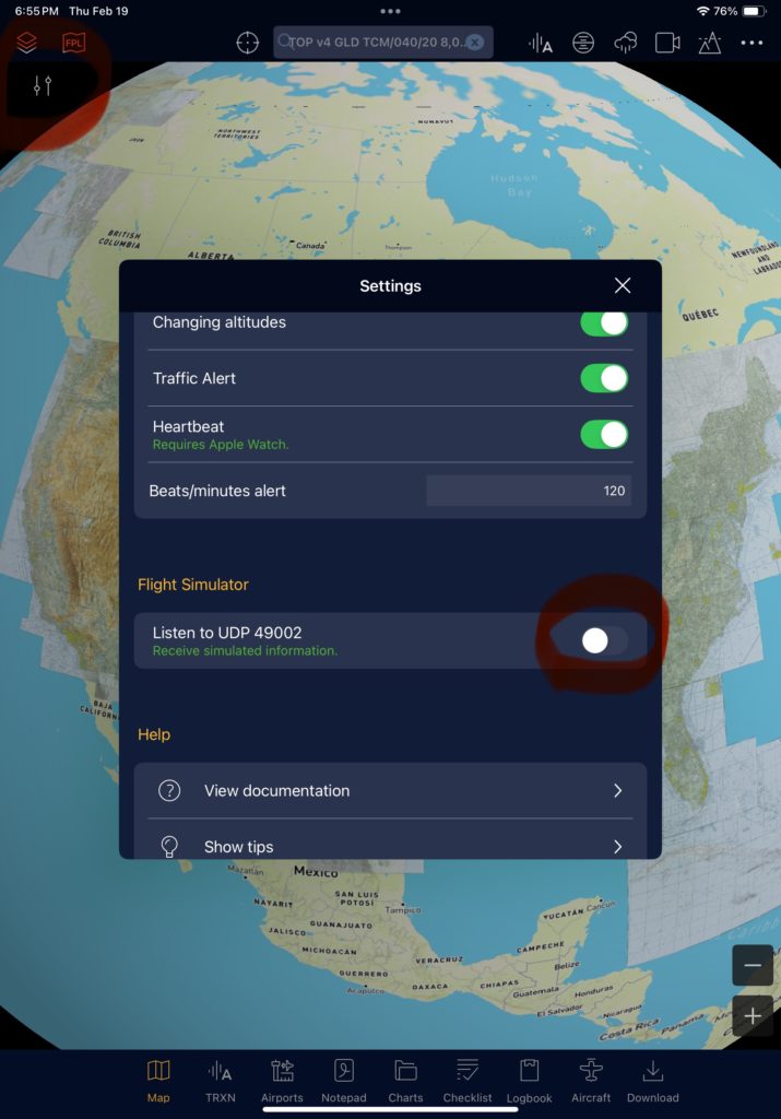 - GDL90-based aviation EFBs (WingX, OzRunways, Stratus Insight, Sky-Map, EasyVFR, iFly GPS): UDP Server, port 49002, XGPS + XATT plus GDL90 traffic